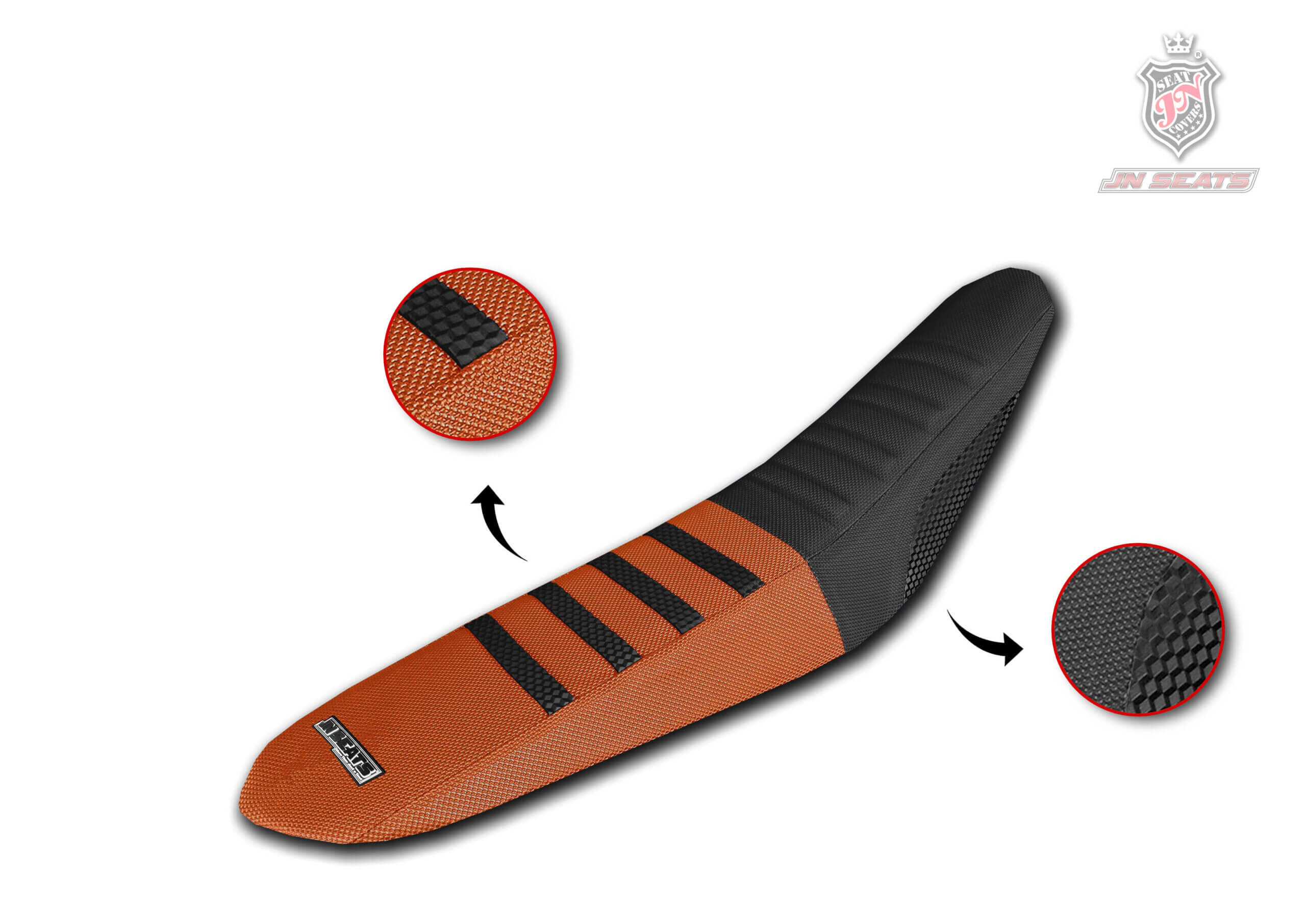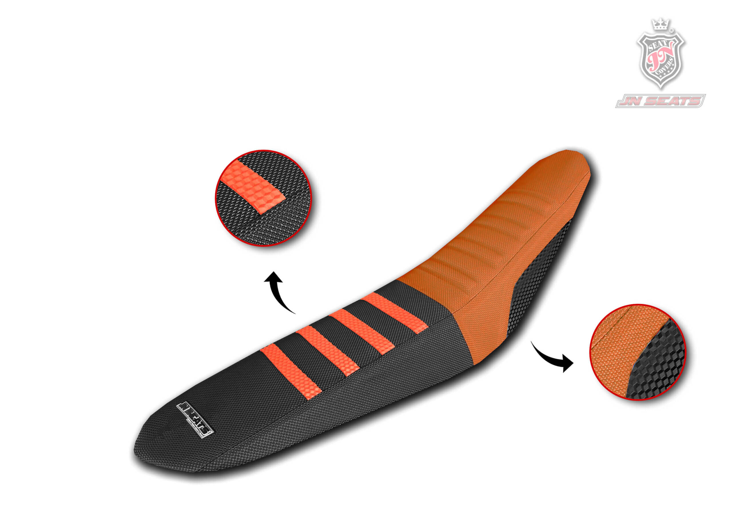 Esta funda de asiento para moto KTM de motocross está diseñada para el máximo agarre incluso en condiciones extremas de barro y lluvia. Cuenta con costuras reforzadas para aumentar su resistencia al desgaste y humps vulcanizados para un máximo agarre.