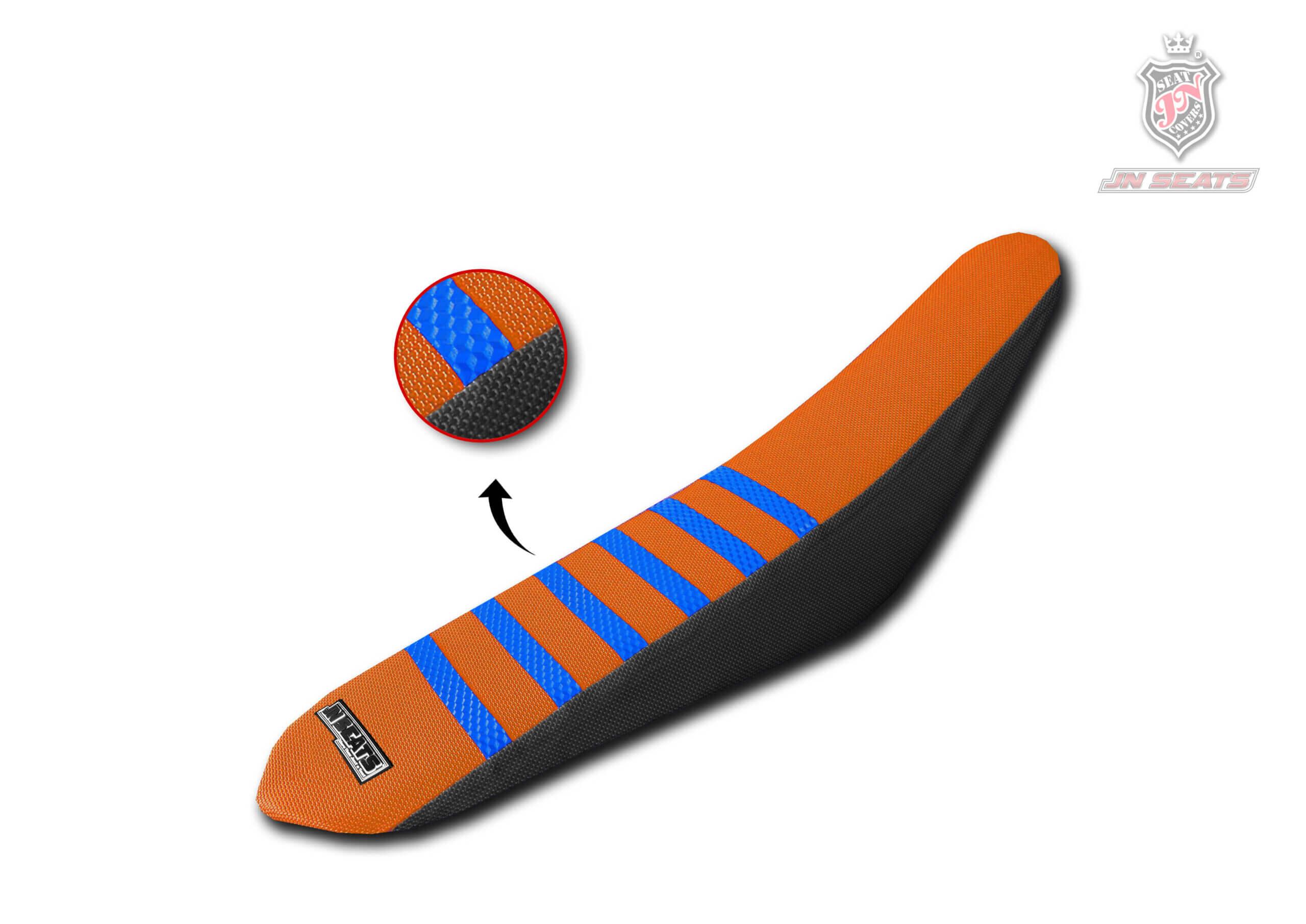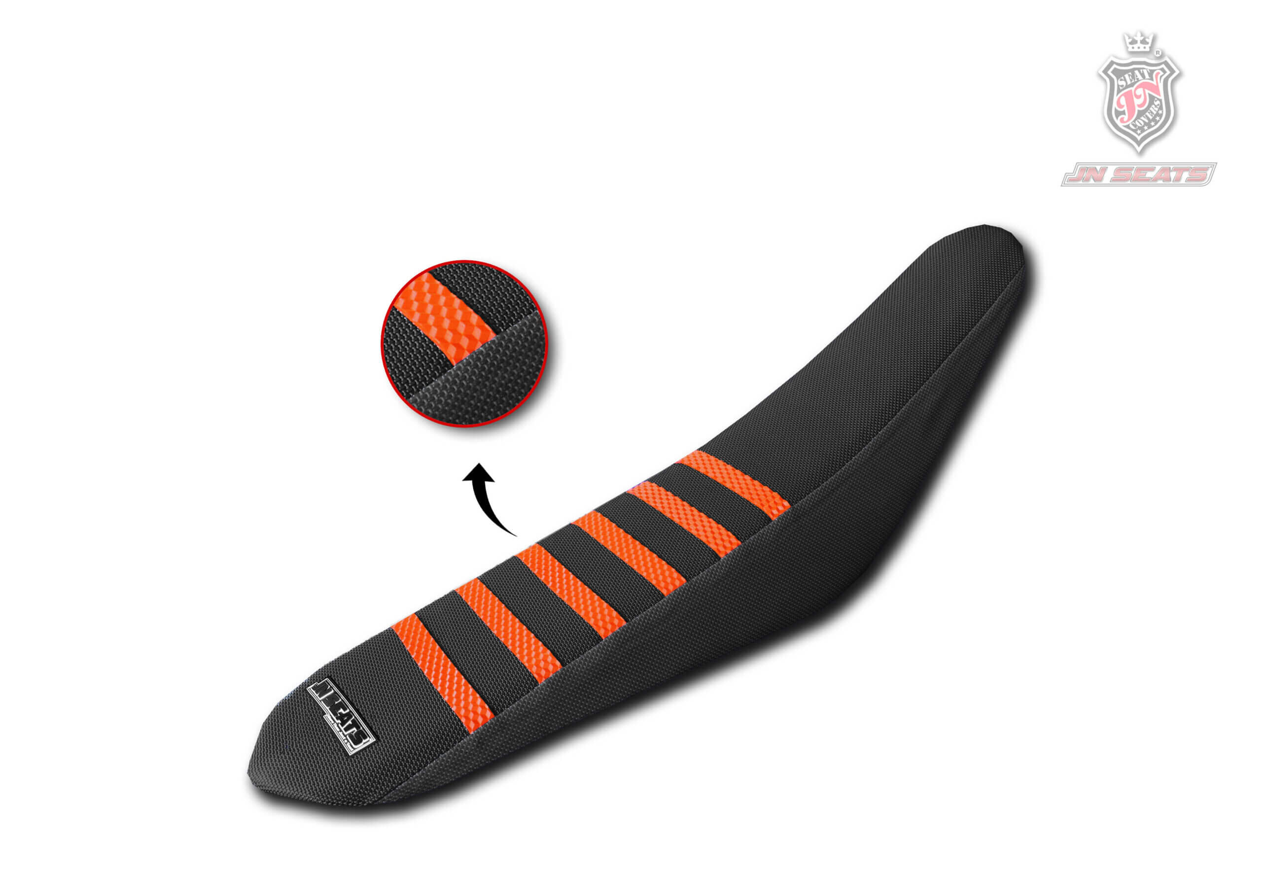 Esta funda de asiento para moto KTM de motocross está diseñada para el máximo agarre incluso en condiciones extremas de barro y lluvia. Cuenta con costuras reforzadas para aumentar su resistencia al desgaste y humps vulcanizados para un máximo agarre.