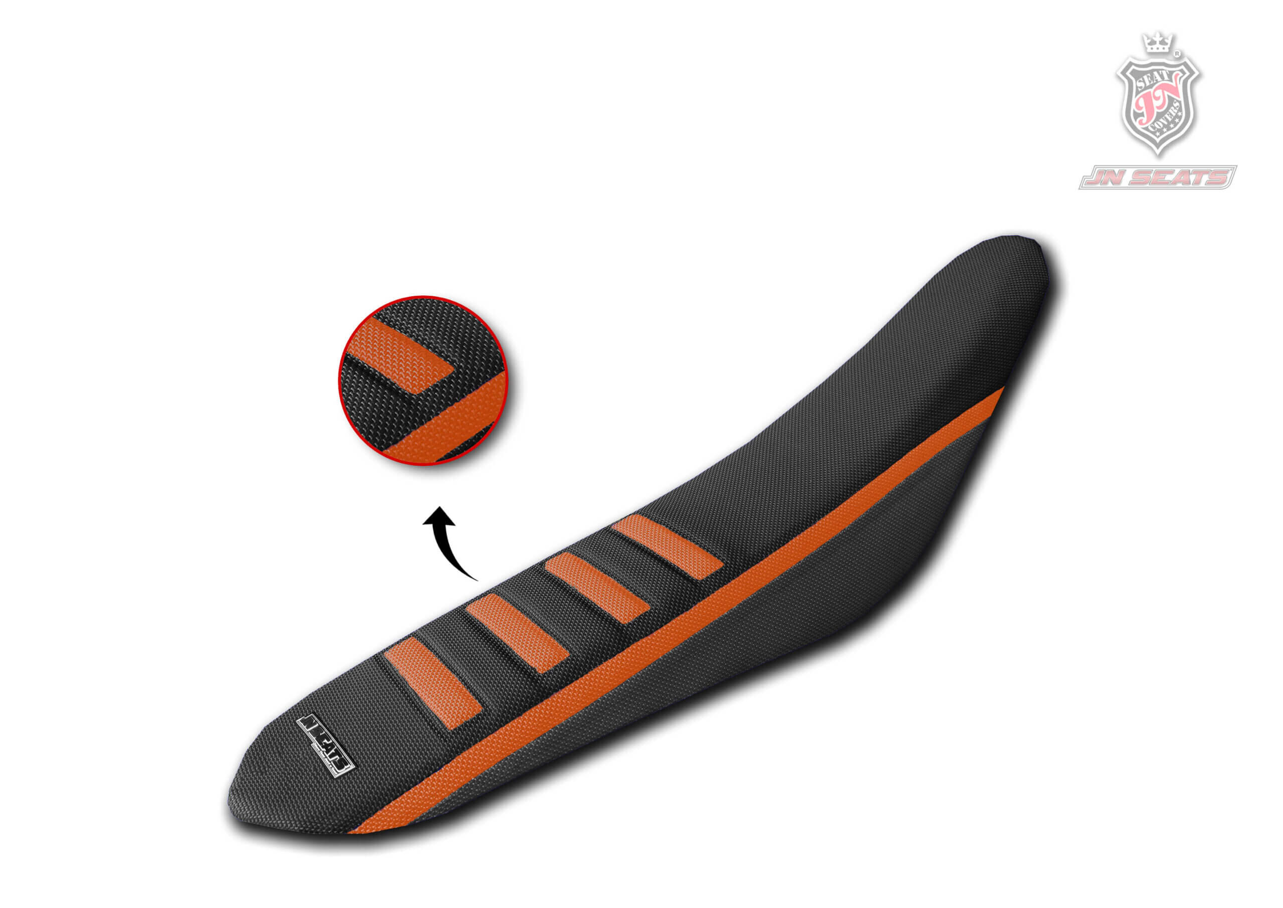 Esta funda de asiento para moto KTM de motocross está diseñada para el máximo agarre incluso en condiciones extremas de barro y lluvia. Cuenta con costuras reforzadas para aumentar su resistencia al desgaste y humps vulcanizados para un máximo agarre.