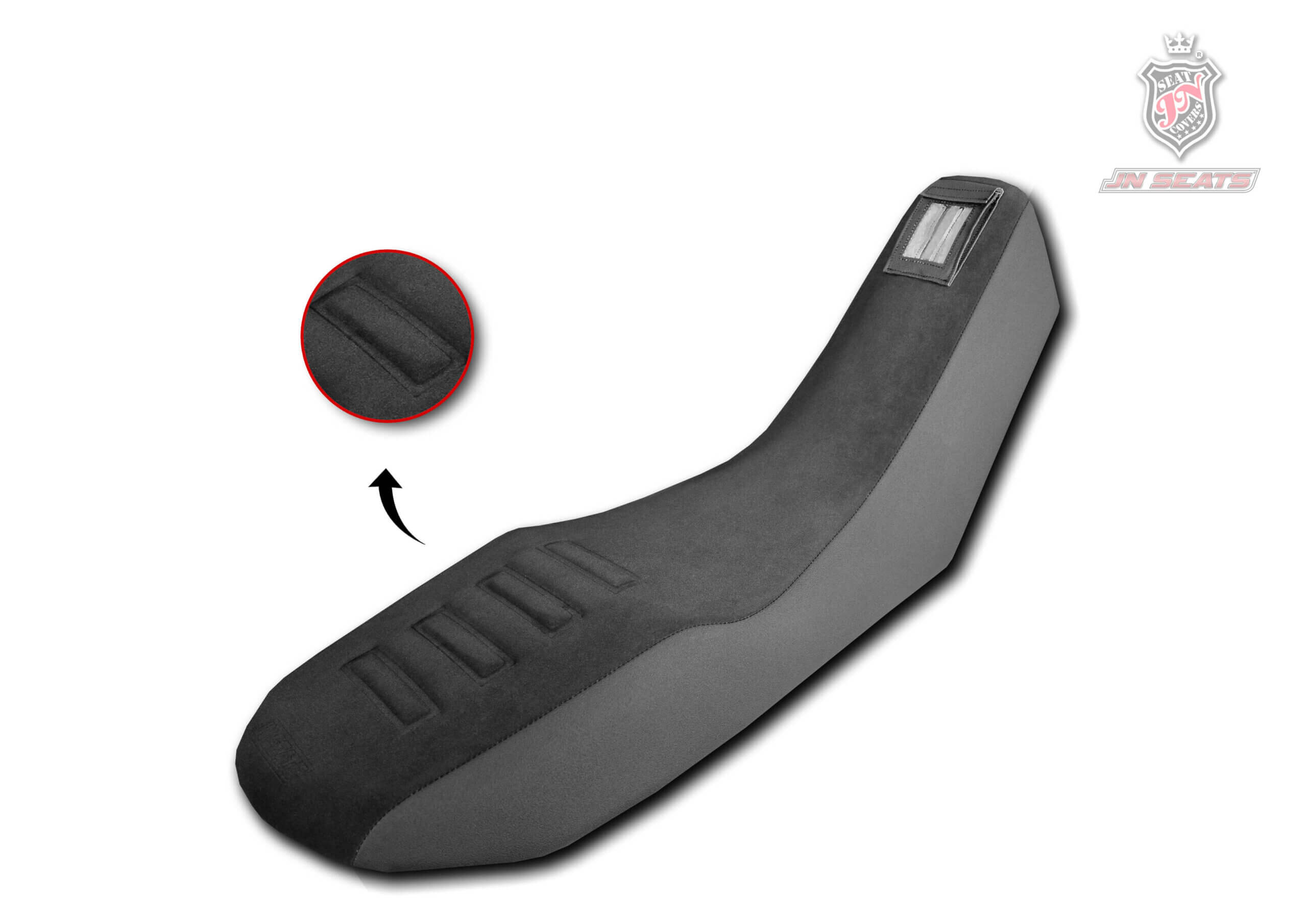 Esta funda de asiento para moto KTM de motocross está diseñada para el máximo agarre incluso en condiciones extremas de barro y lluvia. Cuenta con costuras reforzadas para aumentar su resistencia al desgaste y humps vulcanizados para un máximo agarre.
